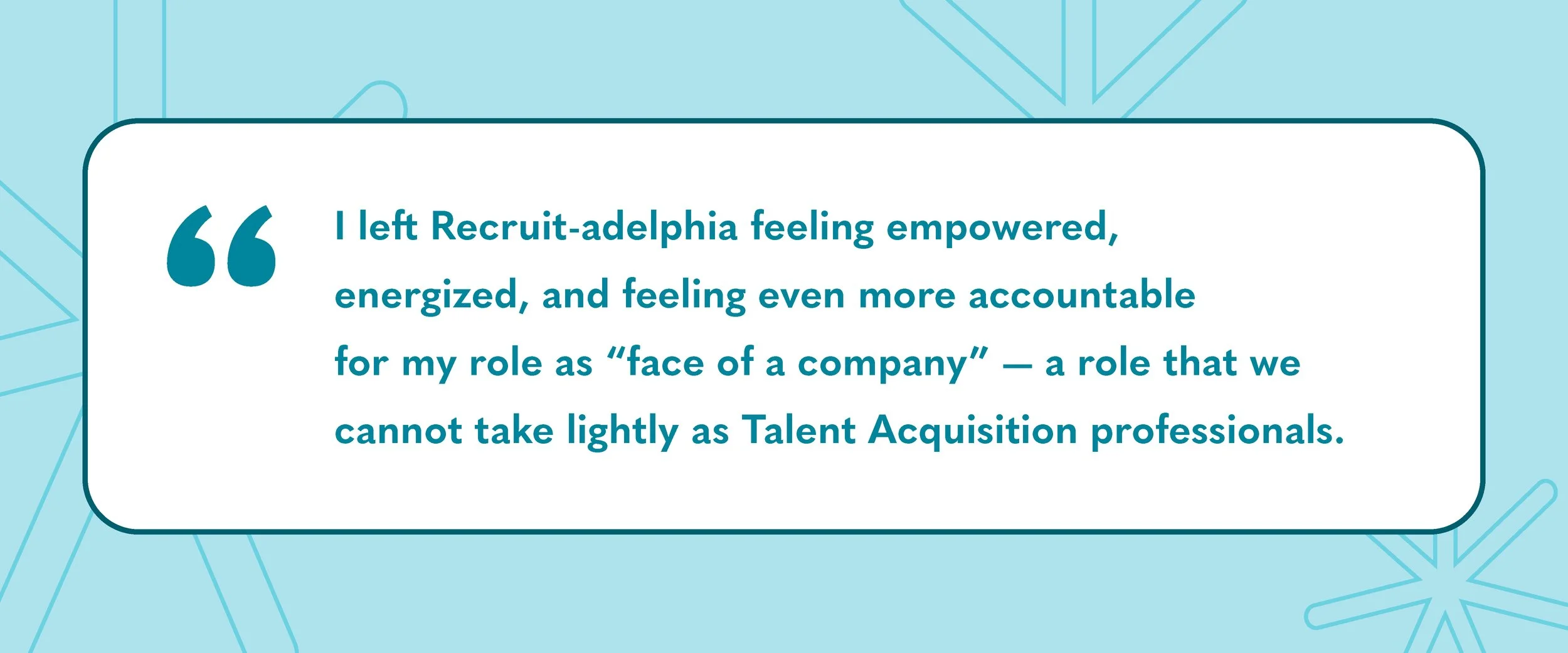 I left Recruitadelphia feeling empowered, energized, and even more accountable for my role as a “face of the company” - a role that we cannot take lightly as Talent Acquisition professionals.